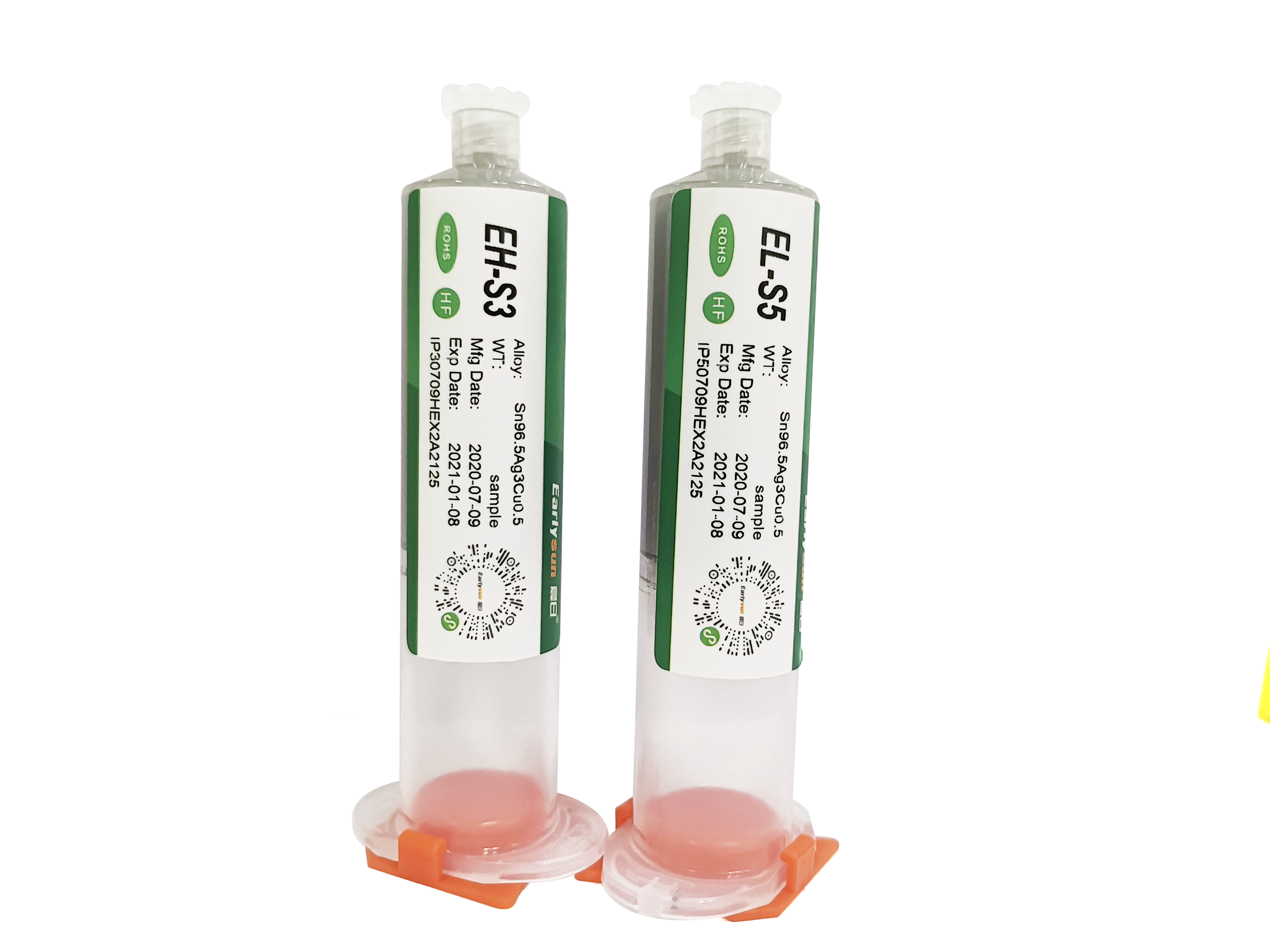 EL-S5/EH-S3系列是一款無鉛、免清洗、完全不含鹵素的錫膏,完美適配激光、哈巴焊、熱風(fēng)槍和烙鐵等快速焊接制程工藝,焊接時(shí)能夠快速激發(fā)釋放焊接所需的活性,并能團(tuán)聚錫粉,極少發(fā)生飛濺、錫球和橋連缺陷,焊接后殘留物極少且呈透明狀,低空洞,具有極高的可靠性。