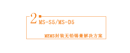 MS-S5/MS-D5系列是一款無鉛、免清洗、完全不含鹵素的錫膏,分別采用SAC305和 Sn90Sb10合金,適應(yīng)于MEMS高抗噪低殘留和二次回流要求要求,產(chǎn)品粘度長時(shí)間作業(yè)變化小,點(diǎn)膠均勻一致,焊后焊點(diǎn)表面光亮、低空洞、高可靠性!