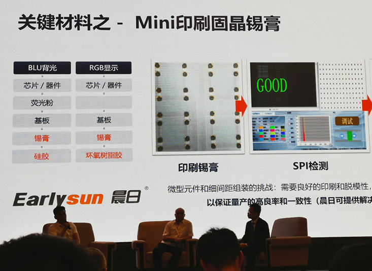 At the meeting, Mr. Qian from Earlysun Technology answered the host’s questions about the two most common problems in the Mini display process --- solder paste printing and soldering. The latest EM-6001 series of die-hardening solder pastes launched by Earlysun Technology can solve all the above problems by repeatedly adjusting and verifying the formula and process parameters of the solder paste. Currently, the SPI detection defect rate after printing can be zero, and the void rate after welding is less than 3%. The chip welding thrust has been greatly improved, and in addition to EM-6001, there are also two types of products: EM-7001 and EM-8001. Their basic properties are the same except for the size of the fruit powder and the viscosity of the solder paste (flux ratio).