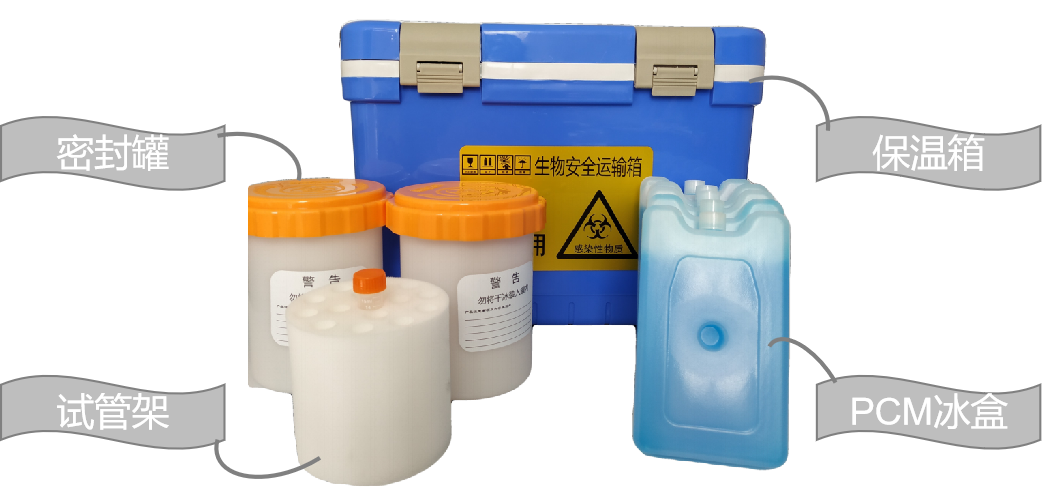 標準配置:保溫箱1只,95千帕密封罐2套,吸附材料/襯墊材料,生物安全標簽和使用說明1套,蓄冷材料1套